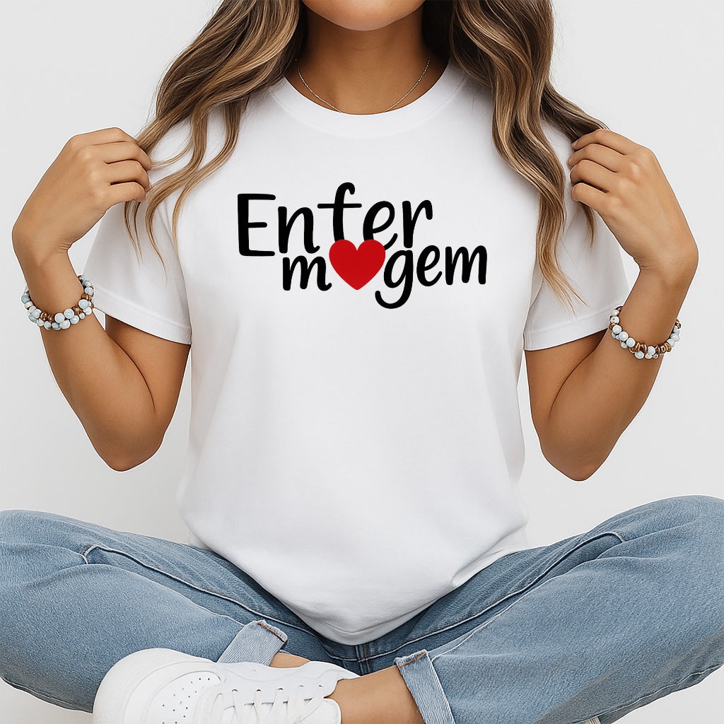 Camiseta Feminina "Enfermagem com Coração" - Clic Moda Criativa